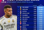 西甲联赛球员身价更新后,德转盘点了西甲最具价值俱乐部排名,具体名单如下:
