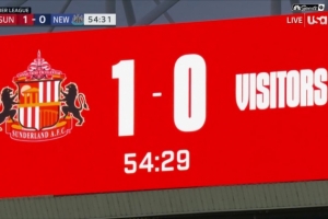 死敌!桑德兰主场比分牌上没有纽卡的队名和队徽,仅以客队标注