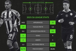 体育资讯12月20日讯 切尔西即将在英超焦点战客战纽卡,whoscored也对比了两队中场核心本赛季联赛关键数据。