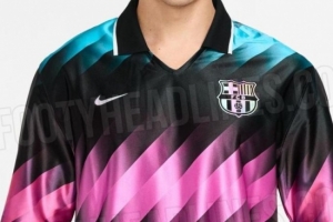 几周前,关于巴塞罗那新赛季球衣的消息已经开始流传,但这次“Footy Headlines”分享了更多细节。这款由耐克设计的复古球衣采用了黑色底色,搭配对角线渐变的青绿色和粉色条纹,这种大胆的设计在巴塞罗那的历史上尚属首次。