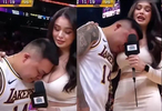 湖人圣诞大战输球后男球迷倚靠在美女记者怀里痛哭照片意外走红