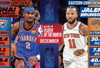 布伦森和亚历山大当选12月最佳球员,詹姆斯库里KD均获提名