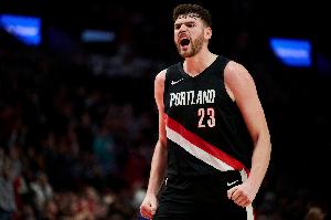 首节比赛,开拓者内线克林根早早发力,三分4中3平生涯纪录,开局连拿11分,首节刚过半便砍下14分。