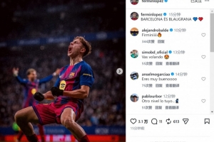 此役费尔明替补出场,送出2记助攻,帮助巴萨取胜,赛后他在社交媒体上晒出庆祝的照片,配文:“巴塞罗那是红蓝色的 💙❤️”